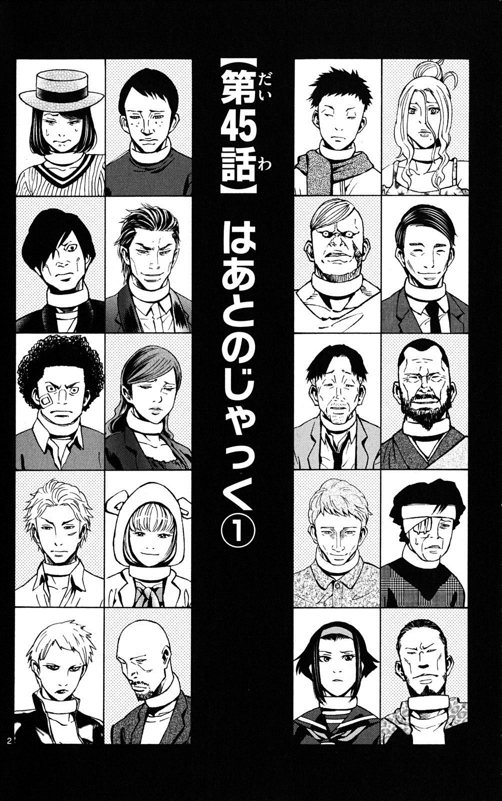 Masaki Aizen interprets the game as a test of appearing trustworthy rather than trusting others and begins attempting to win people over through calculated conversation. Eiji Mitsurugi observes the participants and forms a duo with Kunio Kariya, explaining manipulation techniques used by others. Enji Matsushita tries to force Sunato Banda into a partnership but ends up in tears since Banda exposes his personality in an unfriendly manner. Yaba and Kotoko separate from the others and observe the game from a distance. Katsusai Rokudo's religious talk wins over an unnamed female player,